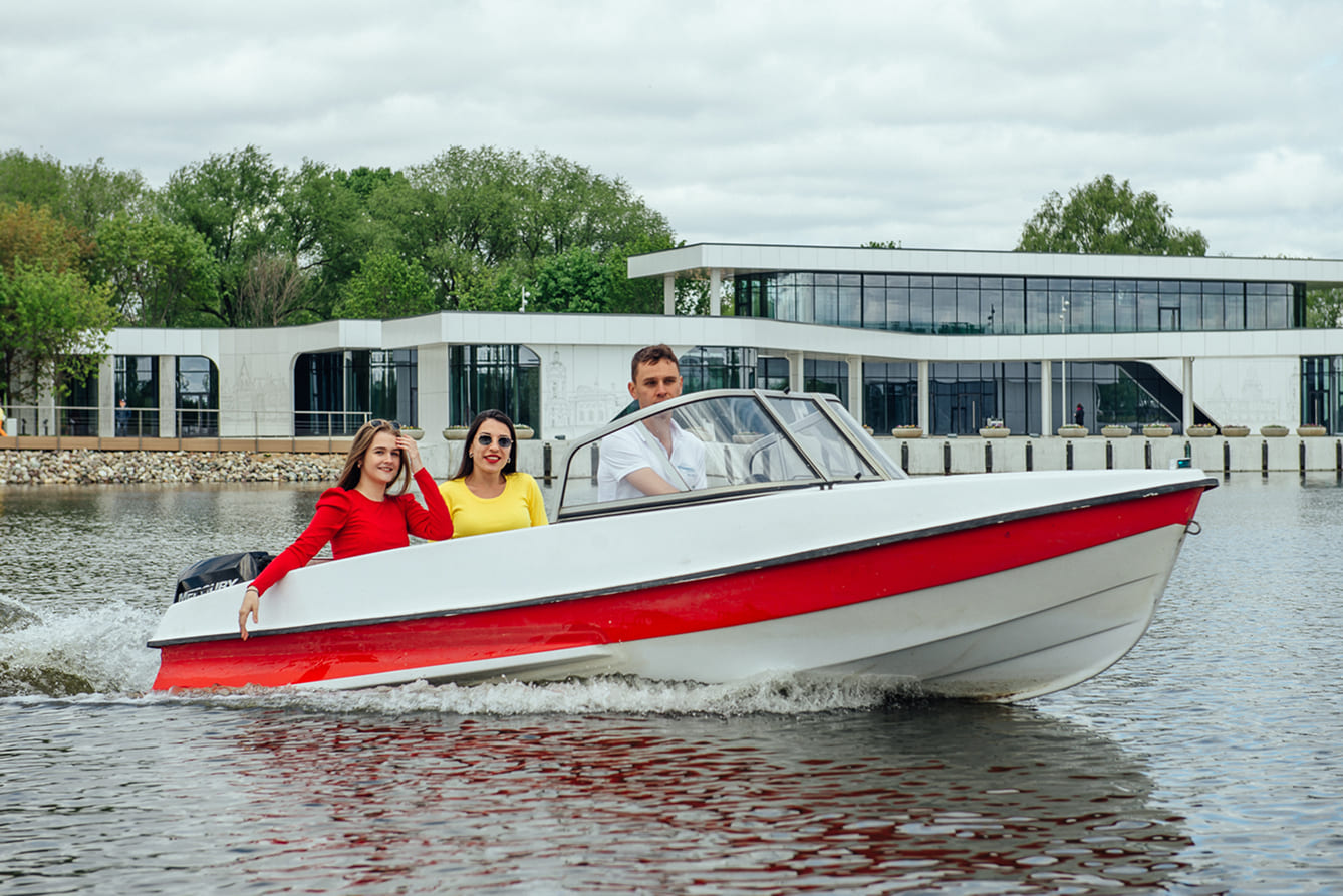 Самостоятельные прогулки на катере без капитана проводятся на юге Москвы вдоль зеленых парков, где нет высокого трафика судов, чтобы вы смогли уверено чувствовать себя на воде за штурвалом катера Шустрый. На катере вы пройдете вдоль шлюза, парка Коломенское, увидите знаменитую колокольню церкви Вознесения Господня, Братеевский парк и спуститесь до самой низкой точки Москвы.